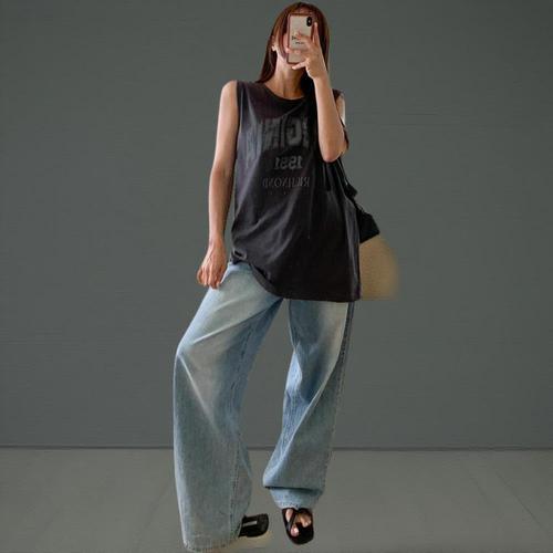 여성 데일리 기본 롱 나시티 면 빅사이즈 라운드 나시 루즈핏 66-110