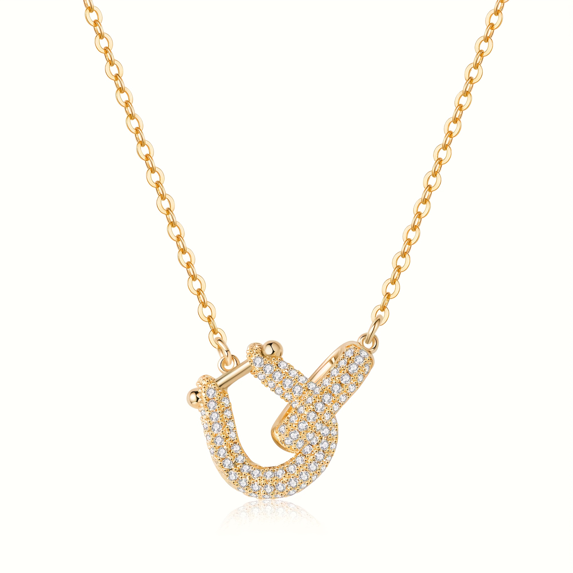 TEMU 여성용 우아한 U자형 목걸이 - 골드 톤 말갈고리 잠금장치와 합성 모이사나이트 장식, 일상 및 포멀 주얼리 선물 (생일, 결혼식)