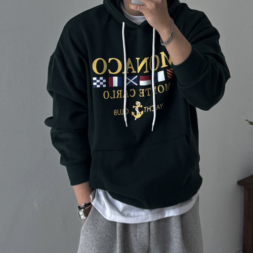 제로스샵 / 캐주얼/캠퍼스룩 오버핏 모나코 기모 후드티 남녀공용 커플 남친룩