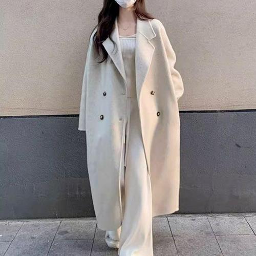 여성용 겨울 외출 데이트 패션 모직 오버핏 롱 코트
