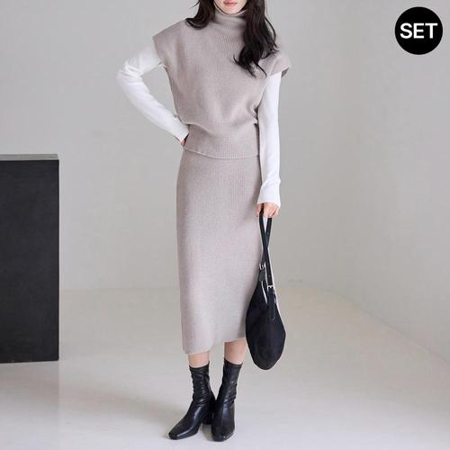 라운드 니트 밴딩 플리츠 스커트 셋업 (TX3OP008L0)