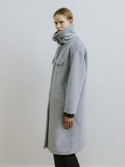 [몰리올리] COCO 카라 롱 페이크퍼 코트 [Steel]