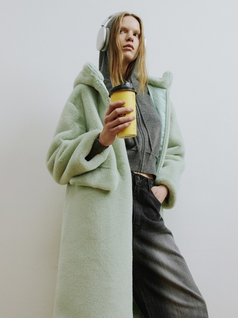 [몰리올리] COMELY HUG 후드 집업 페이크퍼 코트 [라이트 민트그린]