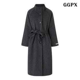 울 블렌드 끈 버튼업 오버핏 롱 코트 (GPDJH010D)