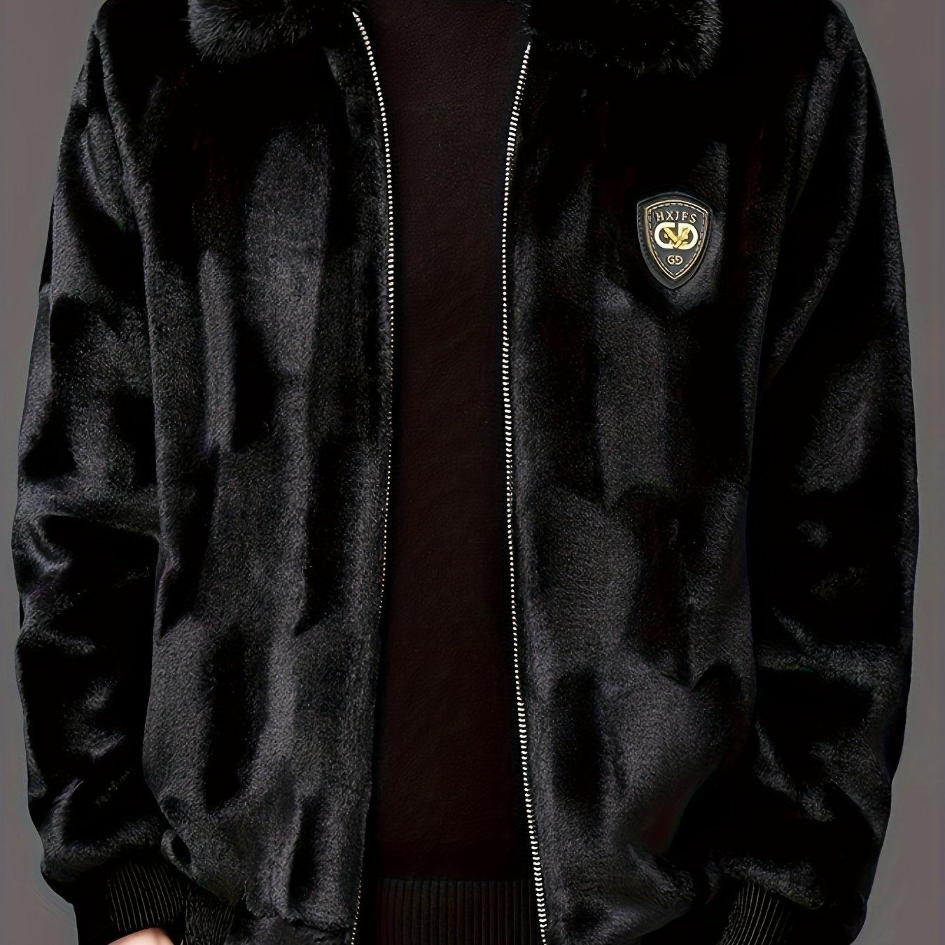 TEMU 남성용 패셔너블한 라펠 하이엔드 경량 럭셔리 두꺼운 따뜻한 격자 무늬 코트, 인조 밍크 펫 소재