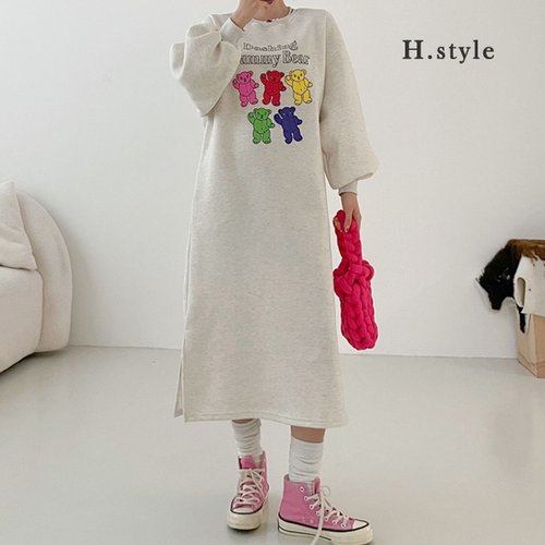 H스타일(OP)기모무지개곰OPS/겨울/OPS/기모원피스