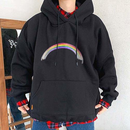 일반핏 겨울 긴팔 후드티셔츠 무지개 프린팅 기모안감 WEEBB81