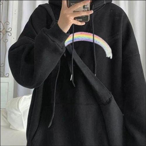 [셀러허브_여성트랜드패션]Rly 남성 무지개 프린팅 루즈핏 베이직 후드티 긴팔