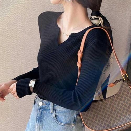여성용니트검정무지티 모임 외출 여자 봄 긴팔 (3kgci)
