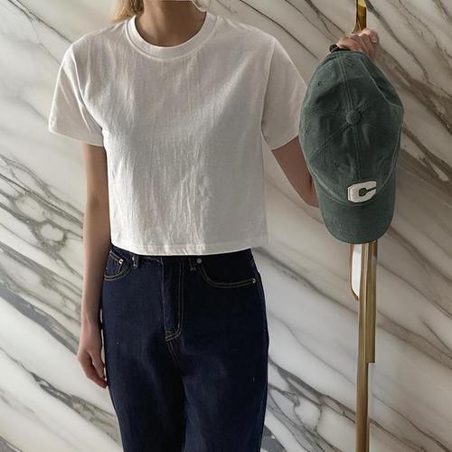 [다잇템]여자 세미크롭 무지 흰반팔 검정 순면 티셔츠