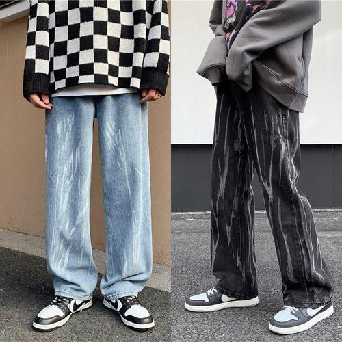[아이에스이랩]사계절 물결 나염 청바지 와이드 데님 팬츠 I5PC062