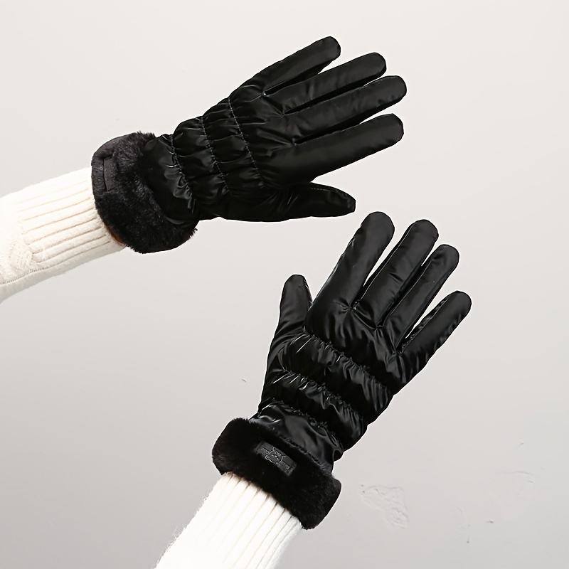 TEMU 여성용 가을 겨울 야외용 따뜻한 장갑, 두꺼운, 터치스크린 호환, 4가지 색상, 전체 손가락, 캐주얼 스타일, 단색, 주말 캐주얼 웨어에 적합, 추운 날씨에 손가락을 따뜻하게 지키세요