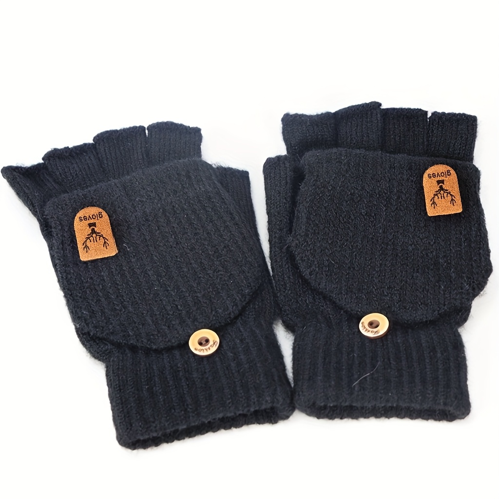 TEMU 남녀공용 겨울용 반장갑 오픈토 플립탑 니트 보온 장갑 1쌍, 선물용으로 이상적인 선택