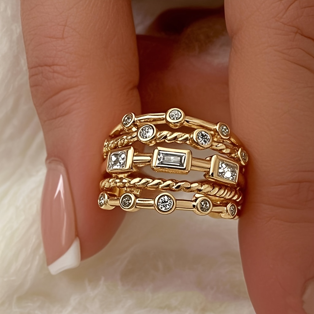 TEMU 1pc - 패션 링 유럽 및 미국 스타일, 다층 직조 구리 기하학 링, 일상 착용, 휴일 행사, 및 이상적인 휴일 선물에 적합합니다.