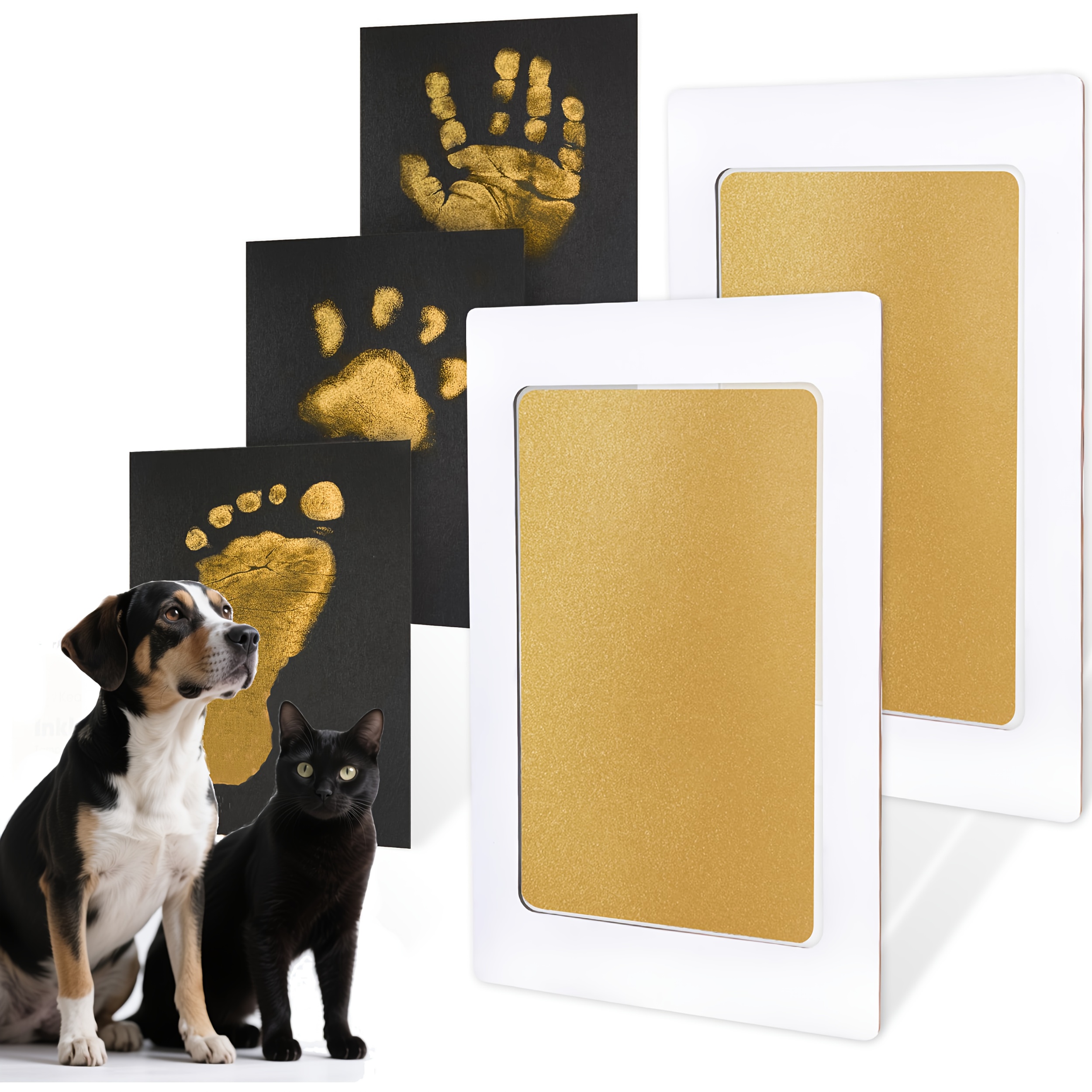 TEMU 골든 애완 동물 발자국 키트, 강아지 및 고양이 발자국을 위한 맞춤 디자인, 비접촉식 애완 동물 발자국 인상, 각 상자당 종이 2매 포함, 총 4매 인상 시트, 애완 동물 주인들을 위한 완벽한 기념품 선택.