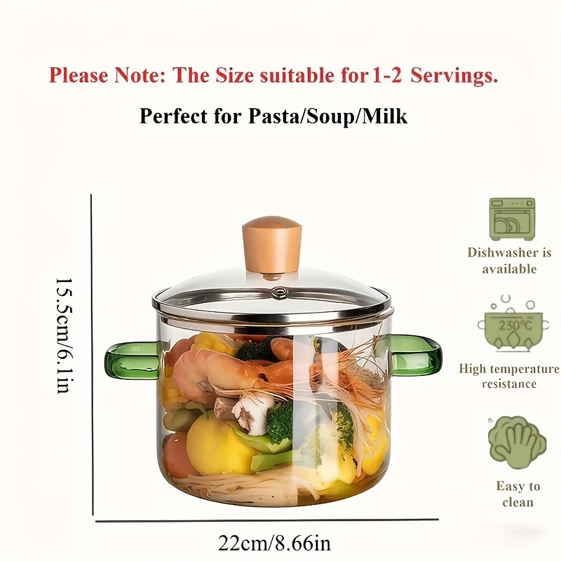 TEMU 1.5L/51oz 유리 슬로우 쿠커, 빠른 가열 식품, 에너지 절약, 내열성, 온도 범위 0-, 오븐, 가스 스토브, 전기 스토브에 적합, 파스타, 수프 및 부케 장식용 안전 (녹색 손잡이 유리 꽃 장식용 냄비)