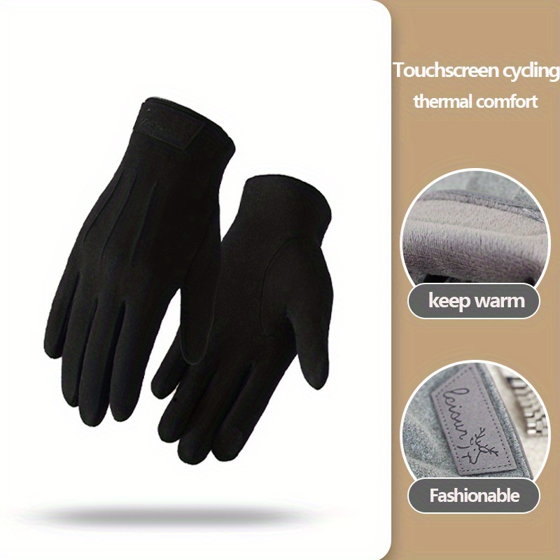TEMU 남성용 겨울 방한 방풍 오토바이용 두꺼운 플리스 아웃도어 하이킹 낚시 미끄럼 방지 터치스크린 인조 가죽 장갑
