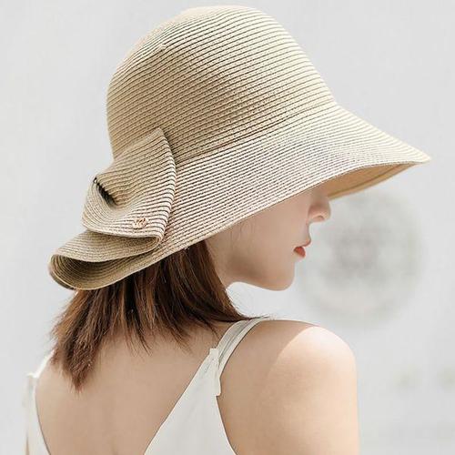 [에이치플러스몰]여성 엣지 웨이브 리본 데일리 비치 버킷햇 밀짚모자