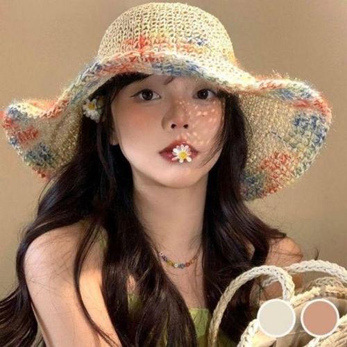 [에이치플러스몰]버킷햇 밀짚 캐주얼 라탄 레인보우 필수템 여름 비치