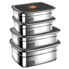Oyoson 냉장 밀폐용기 스테인리스 전자레인지용 도시락통, 4개, 믹스 (Mix)