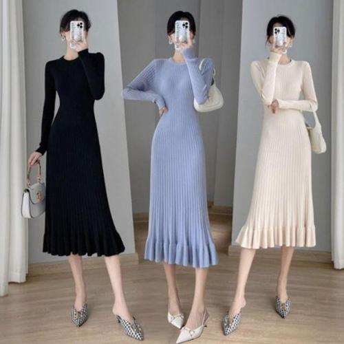 이쁘다요 우아한 니트 여성 롱 프릴 원피스 바디라인 밑단 스런 WFLMPX3