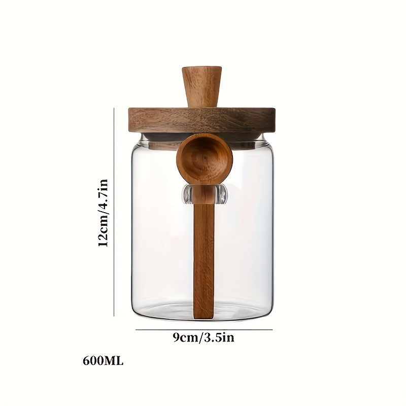 TEMU 1개 커피 원두 보관 용기 800ml 고 붕규산 유리 나무 뚜껑 습기 방지 조미료 병 주방 견과류 향신료 보관 용기 나무 스푼 밀봉 용기