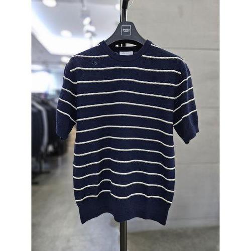[바쏘옴므]세이브존03 남자 네이비 단가라 라운드 반팔 니트 티 WSAGZ2WR28A