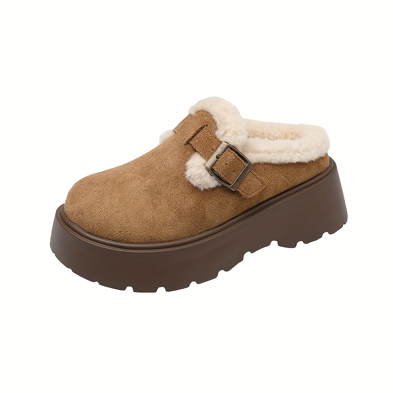 TEMU 여성용 겨울 슬립온 플랫폼 뮬, 플러시 안감 & 인조 모피 칼라 - 포근한 브라운핑크/ - 부드러운 패브릭 갑피 & 고무 밑창 - 따뜻한 여성용 겨울 신발