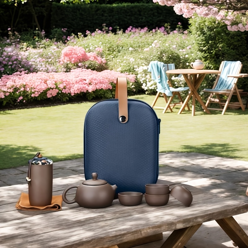 TEMU 권투 차를 위한 수제 휴대용 이징 찻주전자 세트. 여행, 가정, 사무실 및 야외 사용에 적합하며, 여행 가방이 포함된 세라믹 찻주전자와 컵이 있습니다.