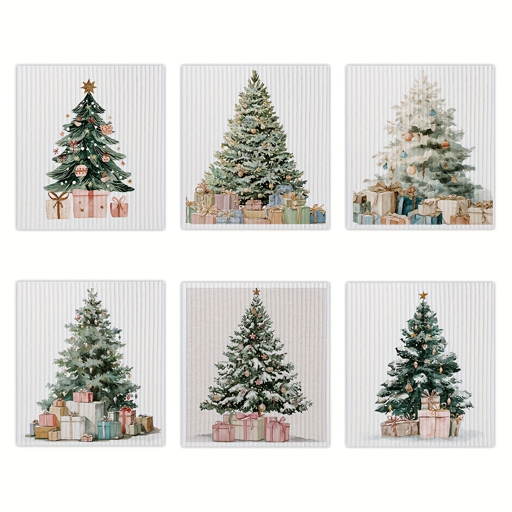 TEMU 2개/6개/12개 스웨덴식 행주, 크리스마스 트리 & 선물 상자 프린트 시리즈 주방 청소 헝겊, 세ลล룰로스 스펀지, 재사용 가능한 빨래 가능한 페이퍼 타월, 뛰어난 흡수력