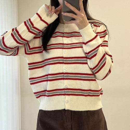 [다잇템][다잇템] 여자 박스핏 레이어드용 콘트라스트 줄무늬 피서룩 가디건_13792596_588872