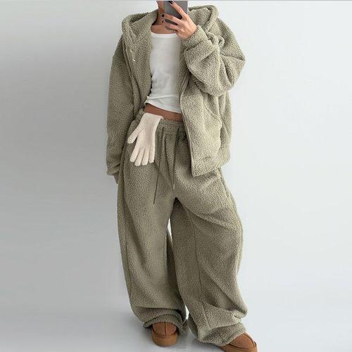 [다잇템]여자 박시 통바지 FW 2WAY 양털 후디집업 세트