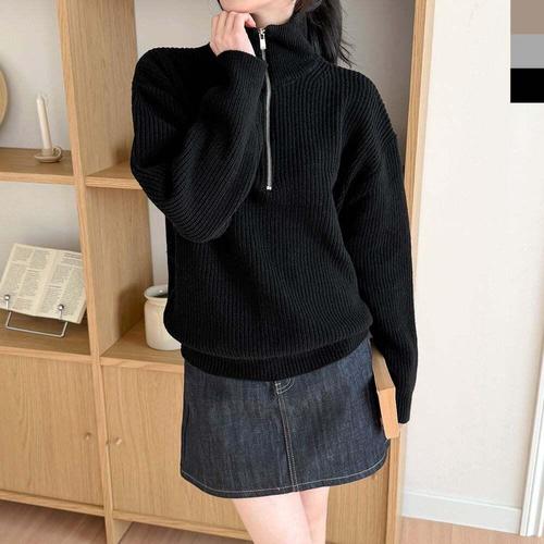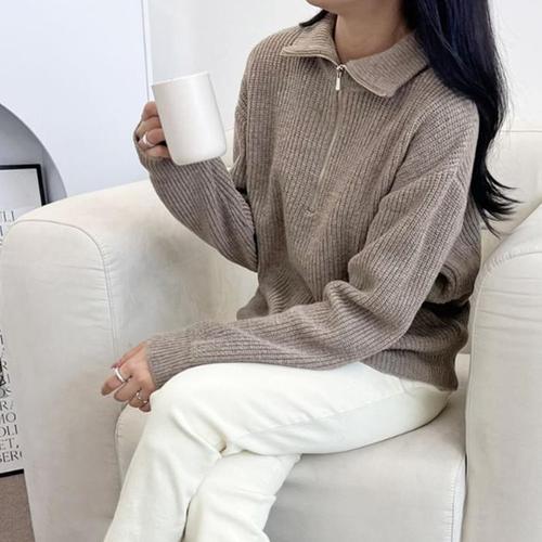 [굿쇼핑몰_의류]4컬러 여성 반집업 카라 골지 데일리 니트 상의