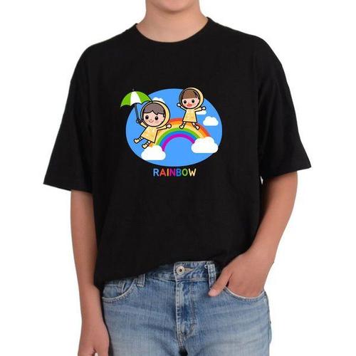 [에이치플러스몰]길단 반팔 USA핏 무지개 우산 RAINBOW 우비소녀 무지개다리그림 다양한색상 전사이즈