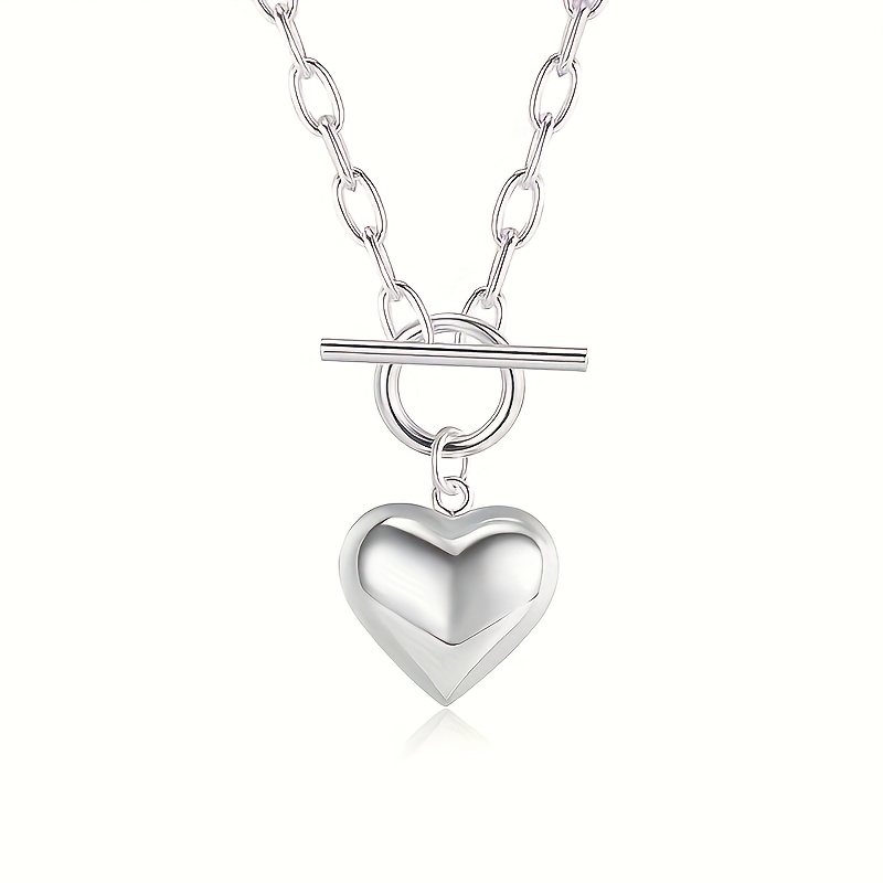 TEMU 925 실버 플레이트 목걸이와 패션 하트 펜던트, 빈티지 힙합 OT 버클 - 청소년을 위한 완벽한 일상 액세서리 및 크리스마스 선물, 청소년을 위한 선물|은목걸이