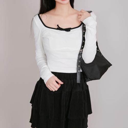 [셀럽하우스]발레코어 NGBY1976 스퀘어넥 백리본 슬림 긴팔 크롭티