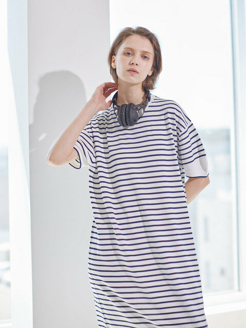 [아이홀릭 캐시미어] 스트라이프 맥시 라운드 원피스