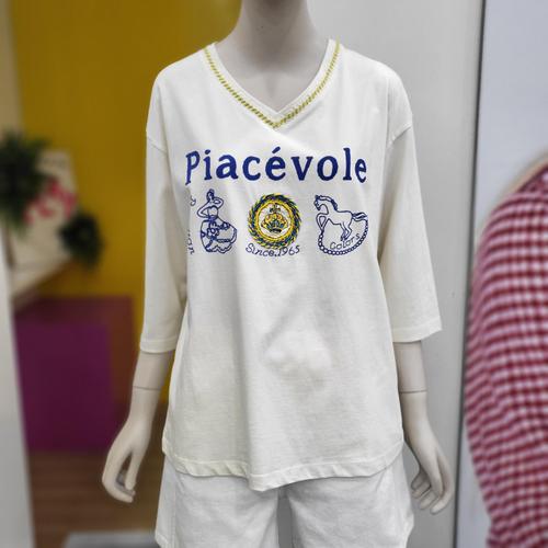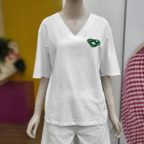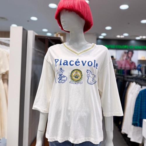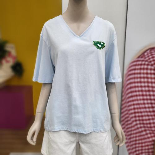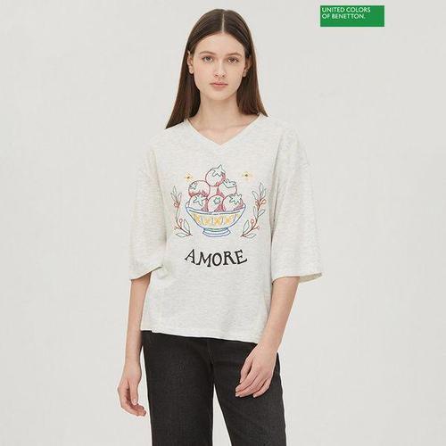 [베네통]브이넥 자수 쮸리 티셔츠 BATS11441