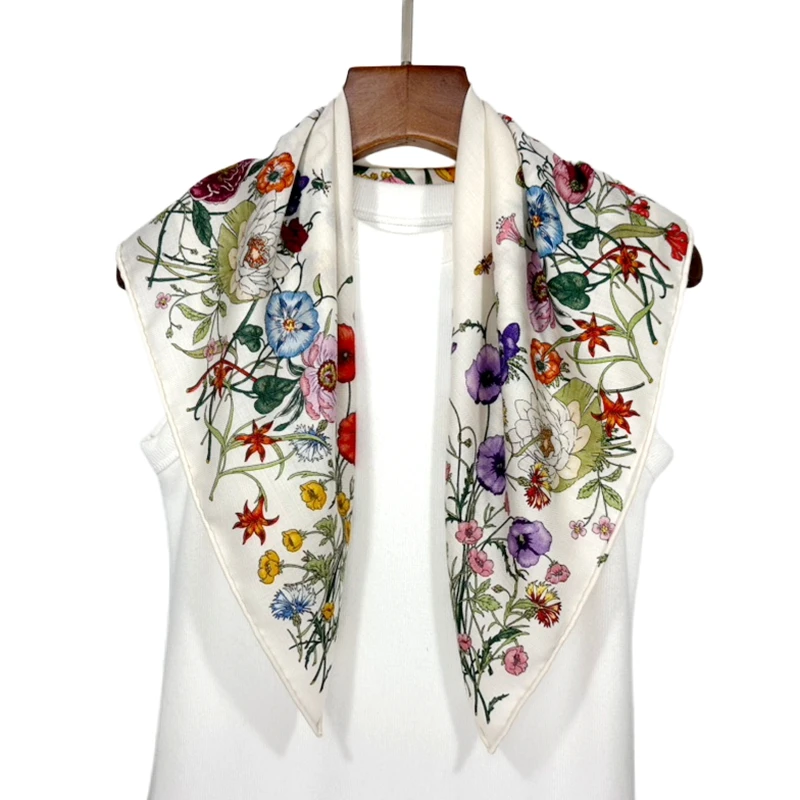 [더로라]100정사각 울실크 양면스카프-헤링보운 블룸 울실크 S24079