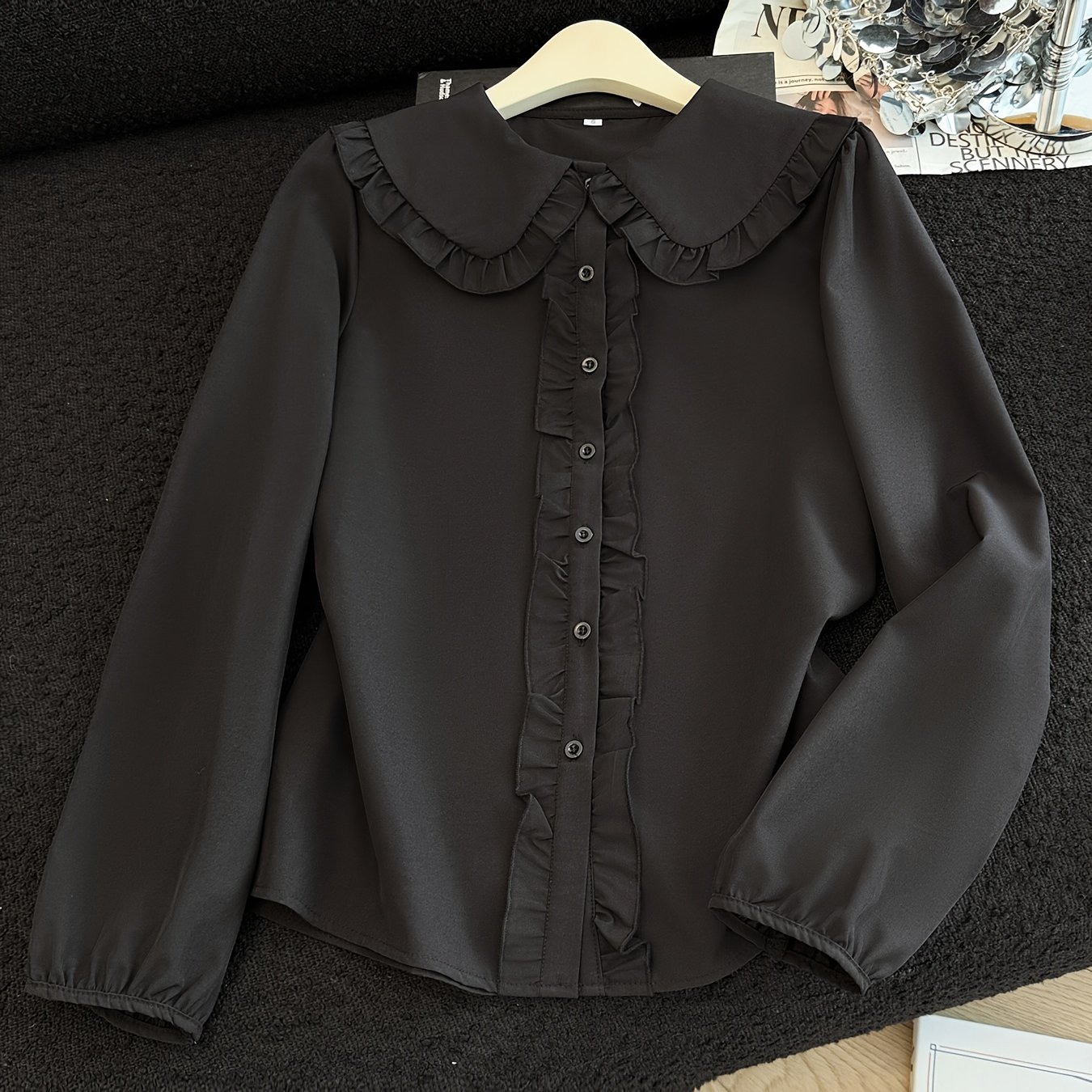 TEMU 여성용 우아한 블라우스 - 긴소매 버튼 앞면 셔츠, 러플 칼라, 세미시어 탑, 포멀 & - 올 시즌 여성 의류, 패션 애호가, 섬세한 원단, 오피스룩, 스타일리시 셔츠|셔츠