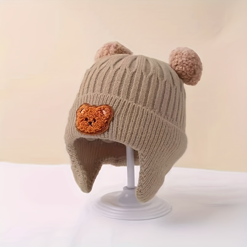 TEMU 귀여운 만화 곰돌이 니트 모자, 버튼 눈 - 100% 폴리에스터 겨울 모자, 따뜻하고 편안하여 일상복 및 휴일 행사에 적합, 야외 활동에 완벽