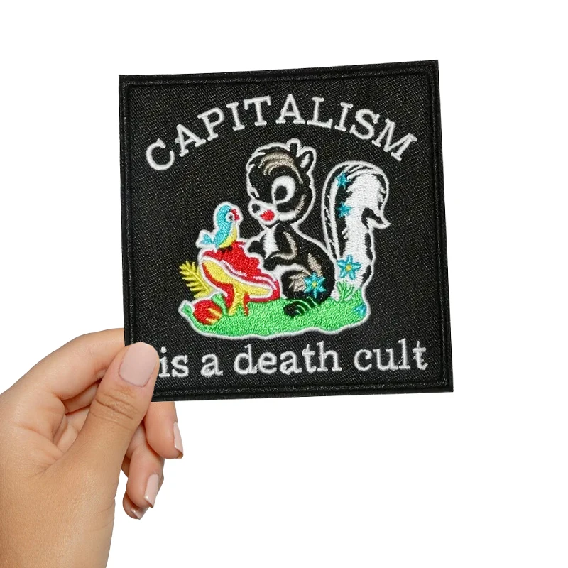 캐피탈리즘은 죽음의 숭배 자수 패치, 다리미 바느질 패치, 의류 모자 가방 재킷, DIY 선물, 재미있는 다람쥐 배지, 1PC