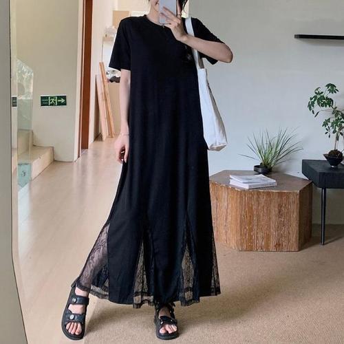 [HYIJQYE9_4B]루즈핏 블랙원피스 시스루 데일리 롱원피스