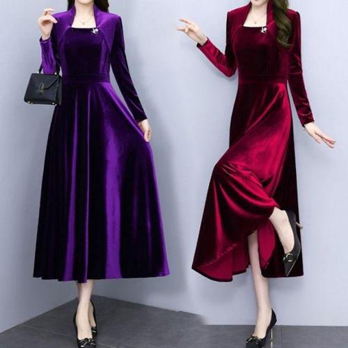 [에이치플러스몰]여성 벨벳 롱원피스 정장 하객 원피스
