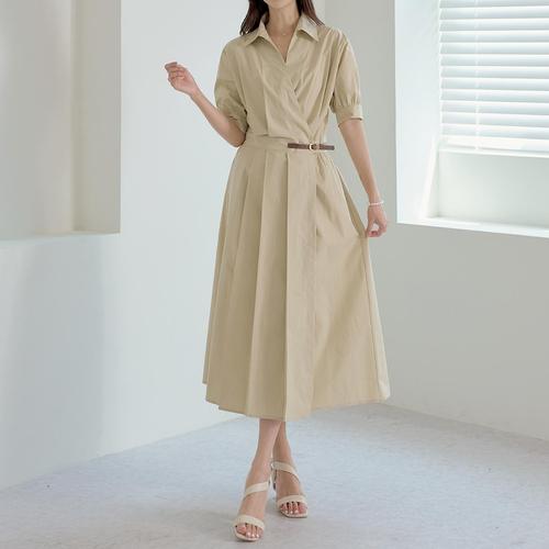 비욘드라이프J CSV 우아한 플리츠 벨트 셔츠 원피스