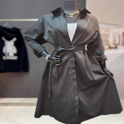 [셀러허브_여성트랜드패션]트렌치 벨트 세트 루즈핏 셔츠 롱 플레어 원피스 코디