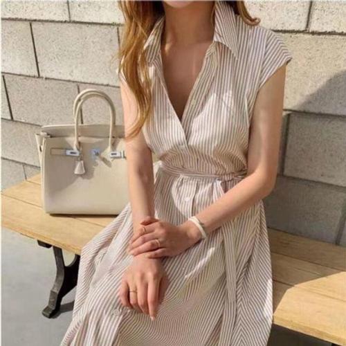 44사이즈 스트라이프 벨트원피스 셔츠원피스 롱 WFLMUTP