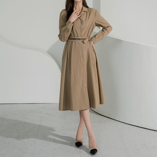 [에이치플러스몰]트렌치 무드 벨트 셔츠 롱원피스 UJS-010