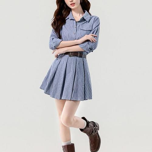 [패션이슈]로바스트라이프셔츠형벨트미니원피스 LU00099