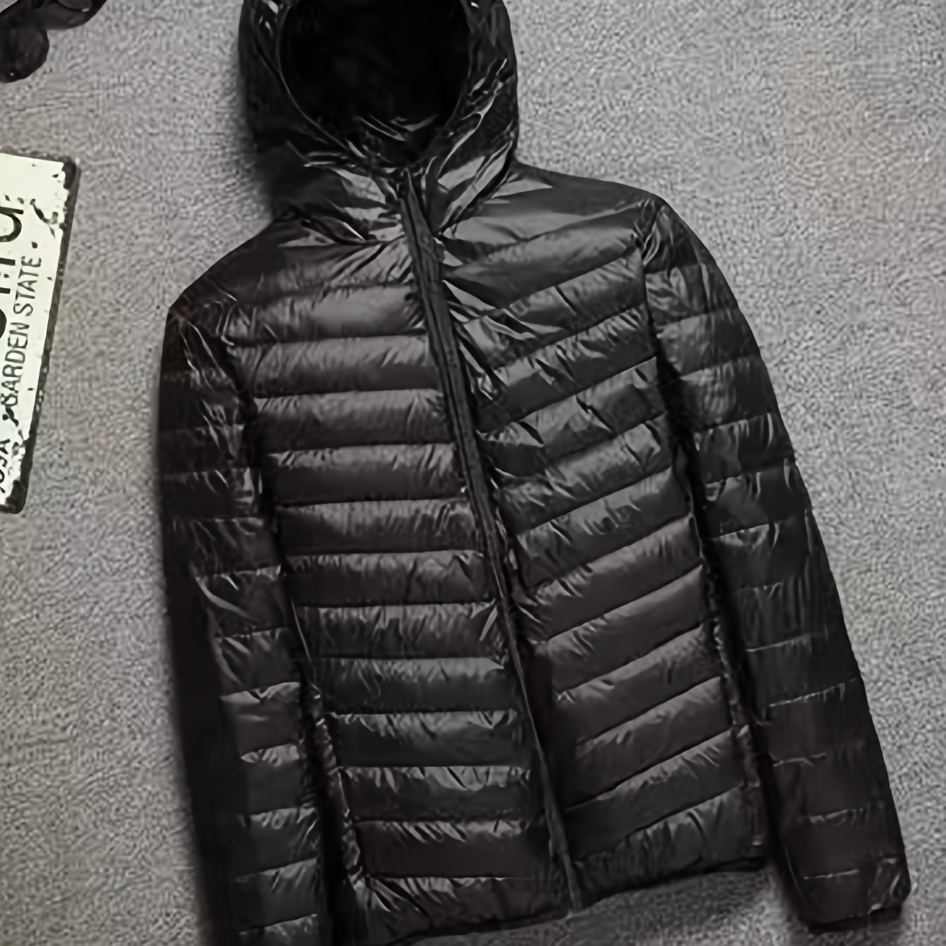 TEMU 남성용 경량 포장형 후드 재킷. 따뜻하고 퀼팅 처리된 이 아우터는 네이비, 그레이, 블랙 색상으로 제공됩니다. 추운 날씨, 야외 활동 및 일상 사용에 적합합니다. 슬림핏, 지퍼 및 휴대용 디자인으로 간편하게 보관할 수 있습니다.